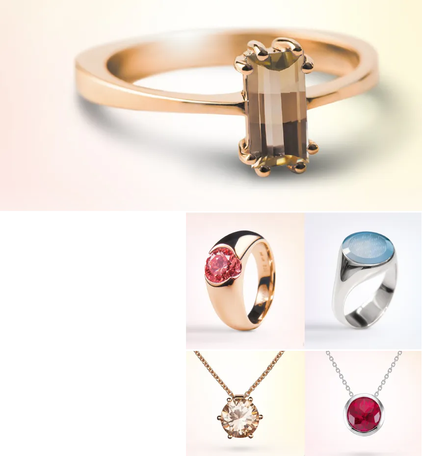 Mevisto fertigt in Handarbeit personalisierte Edelstein-Schmuckstücke von 0,5 bis 12 ct. Aus 18-karätigem Gold (Gelb-, Weiß- oder Roségold) entstehen Ringe, Anhänger und Colliers. Jedes Stück ist einzigartig – sowohl der Edelstein als auch das Schmuckdesign werden individuell aufeinander abgestimmt.