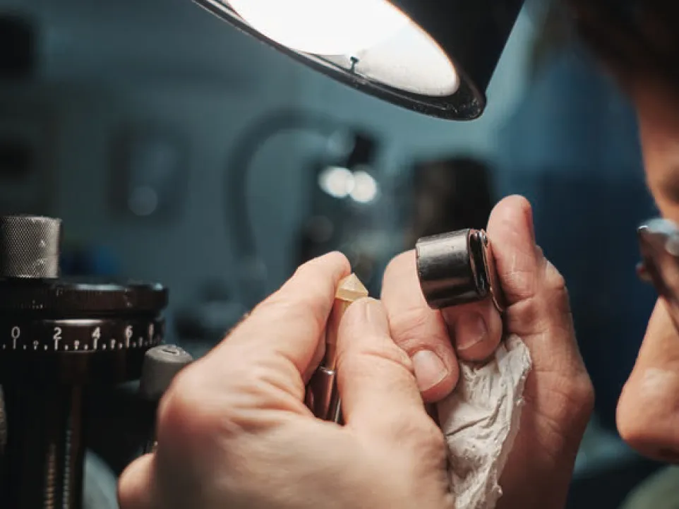 - Fassung des fertigen Edelsteines in ein Schmuckstück